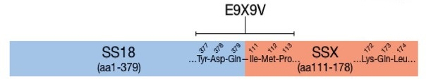 圖1. 融合特異性抗體SS18-SSX(克隆號E9X9V)靶向的SS18-SSX融合基因序列示意圖(引自參考文獻(xiàn)3)